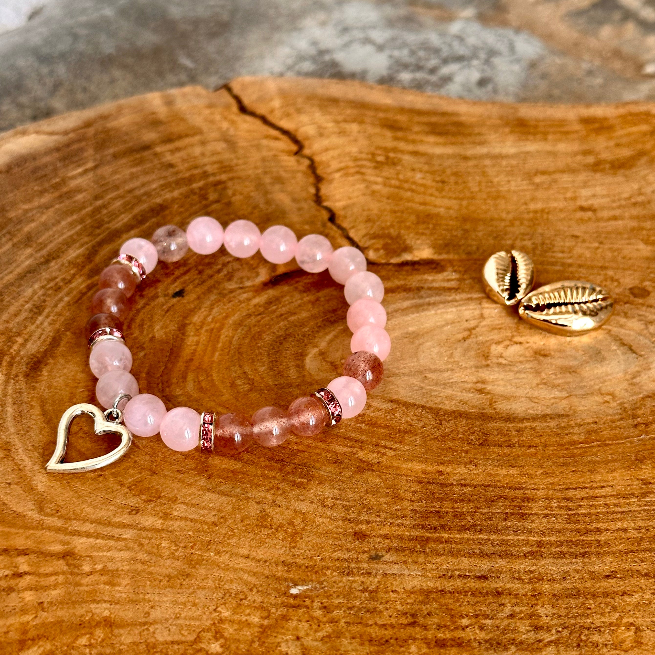 Bracelet Quartz rose / Quartz fraise avec coeur
