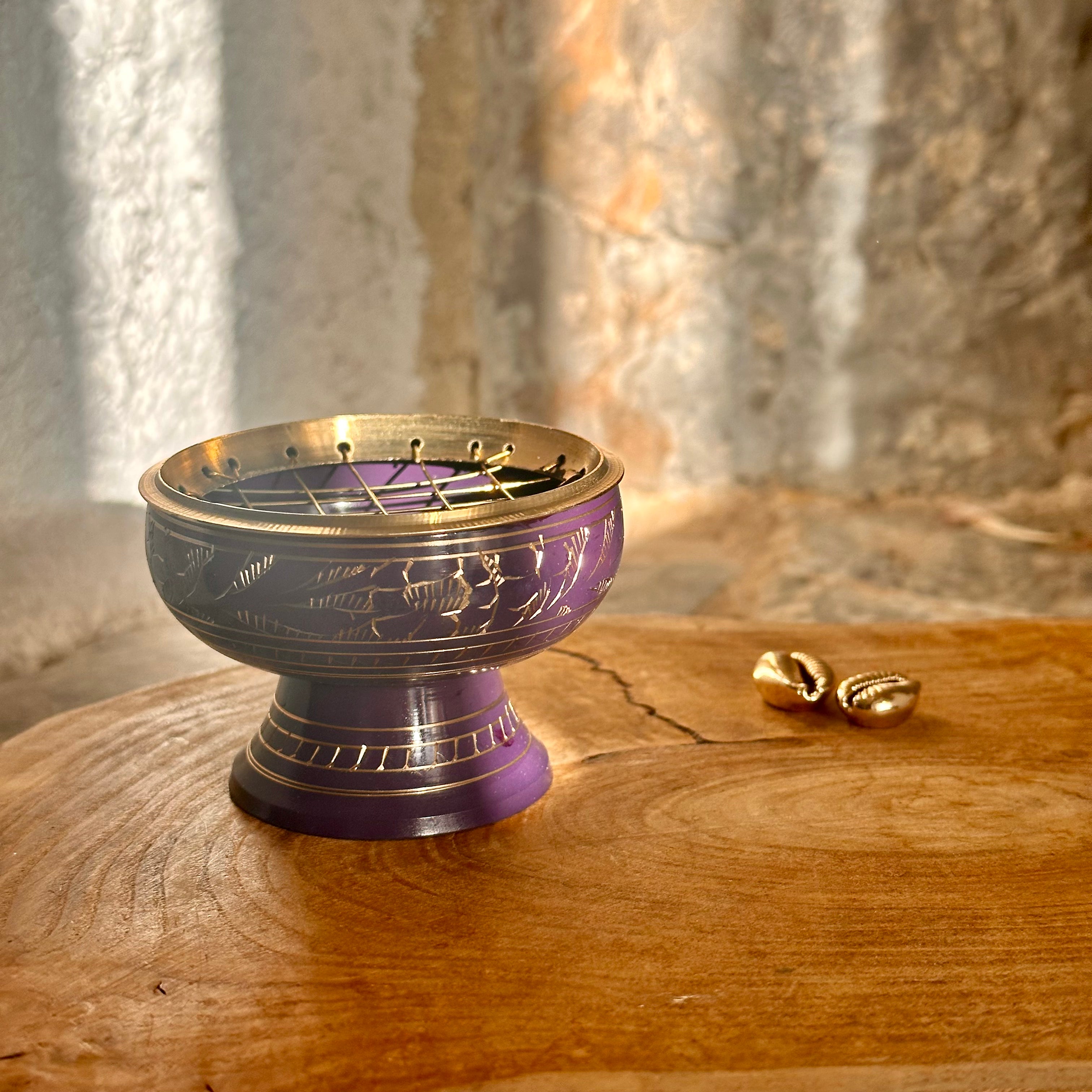 Brûle encens à charbon en laiton pourpre - Mineralshop parfum d'ambiance ,désodorisant, méditation