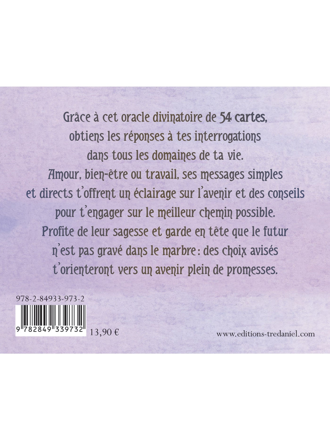 Grâce à cet oracle divinatoire de 54 cartes, obtiens les réponses à tes interrogations dans tous les domaines de ta vie. Amour, bien-être ou travail, ses messages simples et directs t’offrent un éclairage sur l’avenir et des conseils pour t’engager sur le meilleur chemin possible.