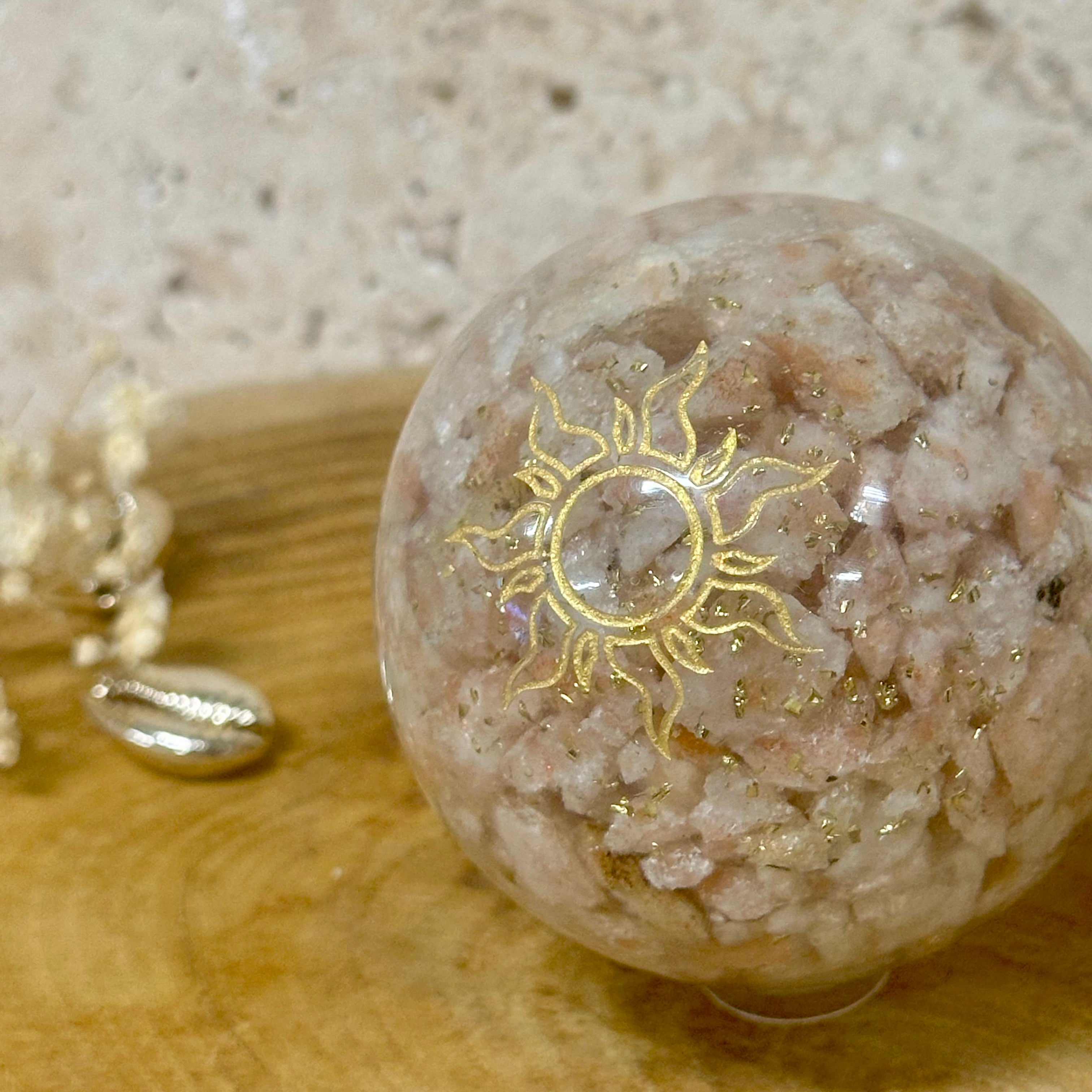 Orgonite sphère en pierre du soleil et symbole solaire