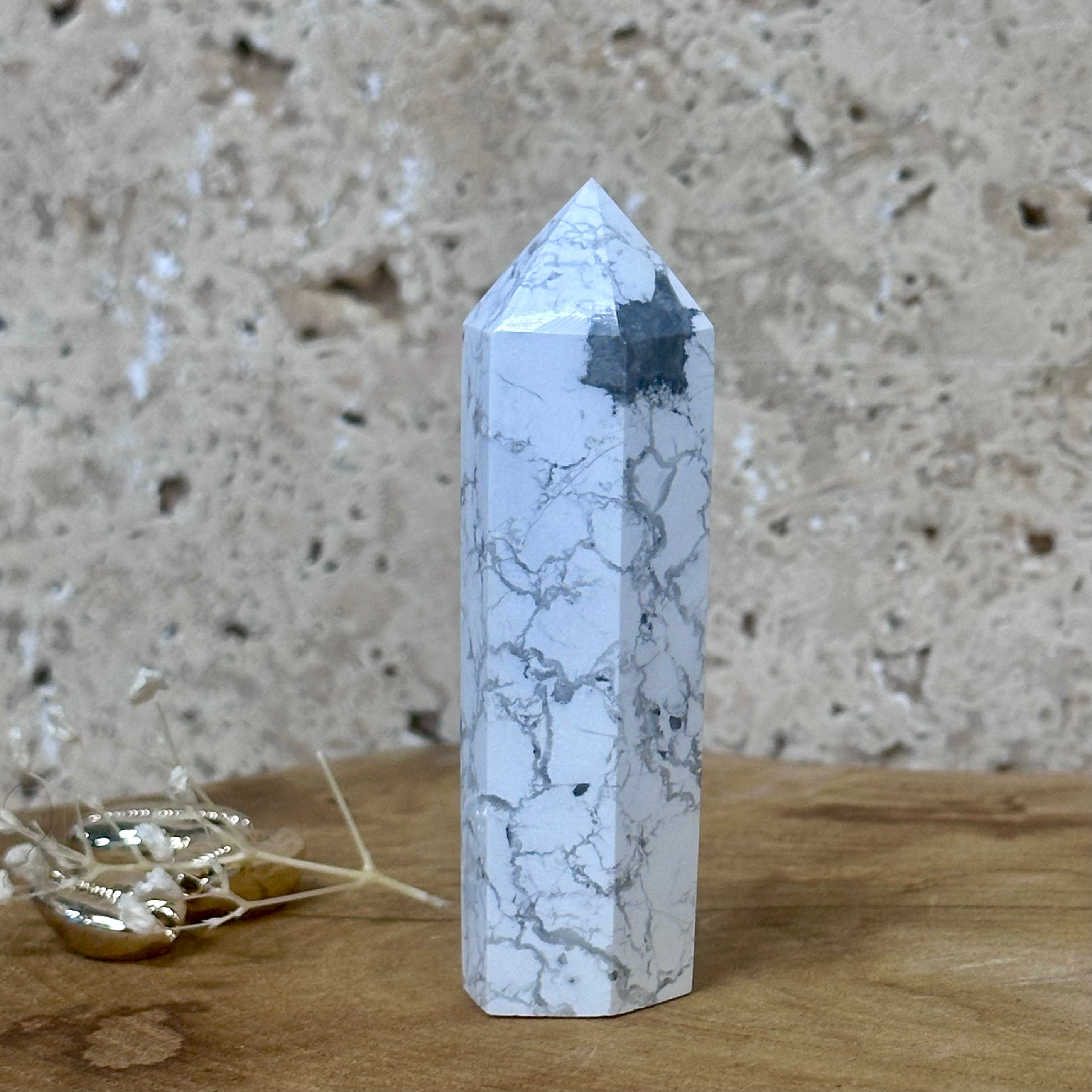 Cette pierre aiderait à communiquer avec son entourage. Elle aiderait également à la gestion du stress. La howlite contribuerait à apaiser les tensions et à réduire le stress et l'anxiété.