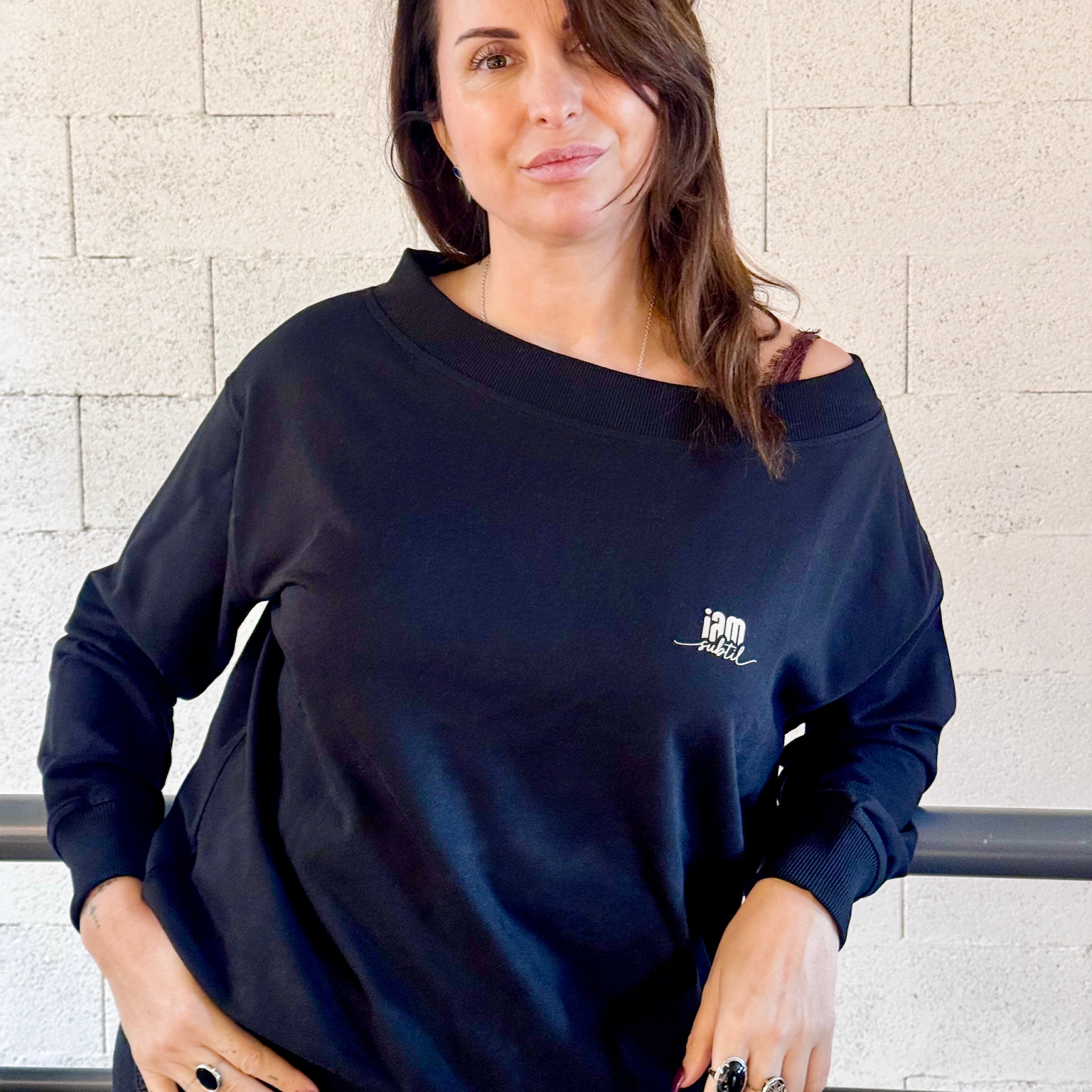 Sweat noir à manches longues "LOGO IAM SUBTIL"